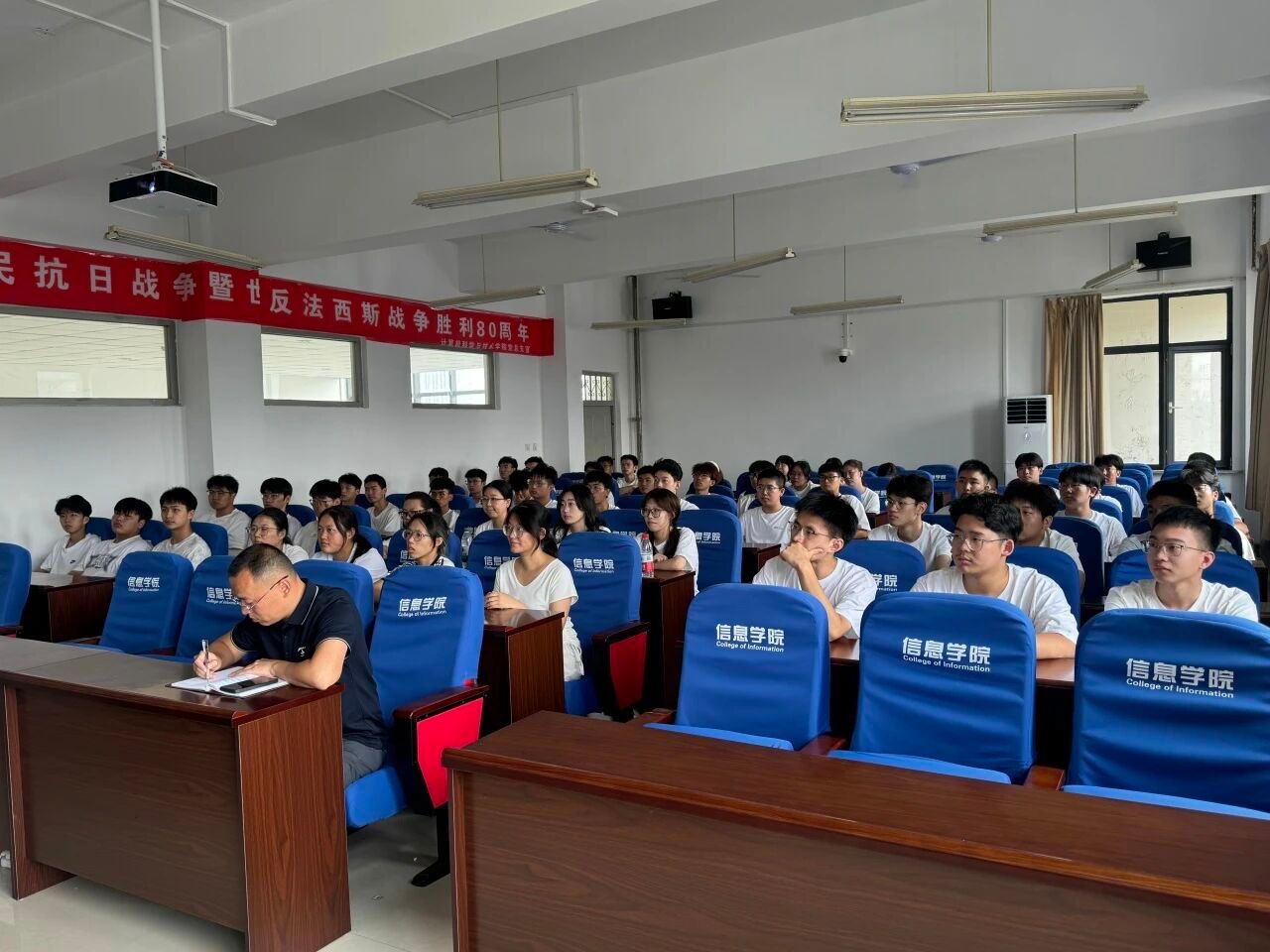 下午,王洪江以《科技报国:计算机青年的使命与担当》为题,围绕 “为何学、为谁学、怎么学”,结合国家战略、社会责任与个人成长,为新生上了一堂立意高远、思想深刻的 “开学第一课”,引导青年学子明确专业价值,树立报国志向。