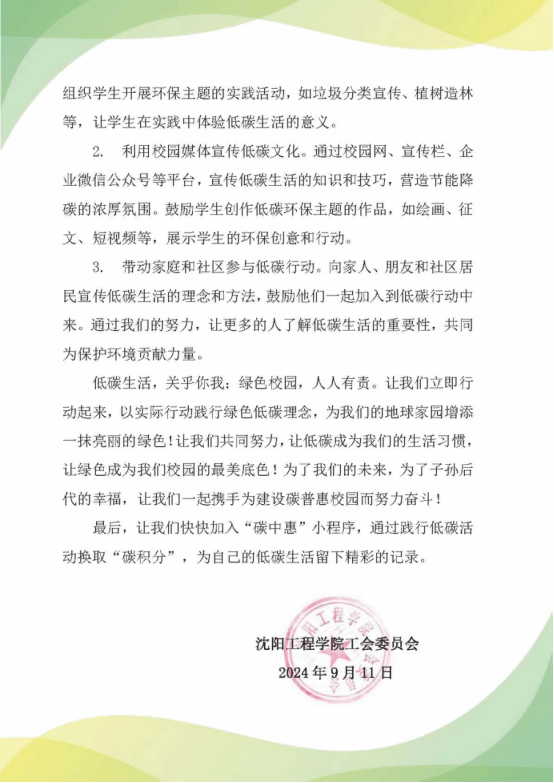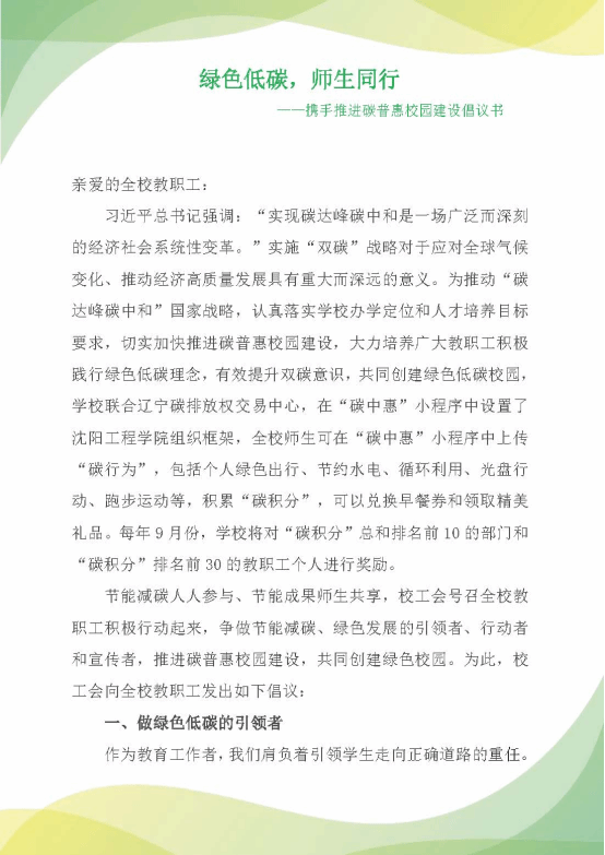 绿色低碳,师生同行——携手推进碳普惠校园建设倡议书
