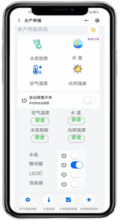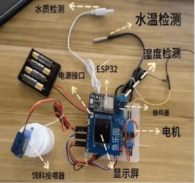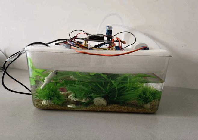 鱼乐园-家居水族馆作品由郭明昊等同学完成,“鱼乐园”项目结合了软硬件技术,通过对家用场景下鱼缸的水质、水温、室温和光照等参数的实时监测和控制需求,以确保鱼类的生长环境始终处于最佳状态。项目还设有水泵、投食器,能做到远程养殖,并且能云实时监控,在各项数据超过预设值后,养殖者会收到预警提醒,能及时对养殖过程中出现的问题进行调整。旨在提供更智能、便捷和可控的养鱼环境。作品实现了通过微信小程序远程控制家居水族馆功能,达到了预期得设计目标。