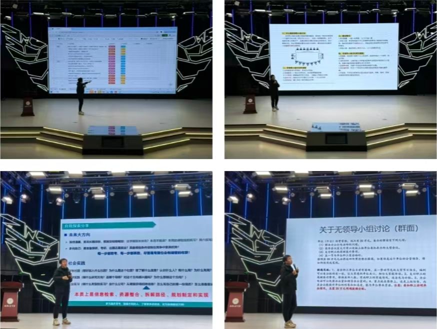 李禹城从多方面为同学提供成长指导。专业学习与生涯规划上,他建议注重课堂理解与预习、合理分配时间,理性参与跨学科项目,尽早明确发展目标并制定优化计划;社会实践与竞赛方面,他阐述了实践项目的价值,介绍官方赛事渠道、高水平竞赛备赛要点及学习资源平台;实习与求职层面,他强调实习的能力积累导向,分享实习获取渠道、岗位职责,提供简历筛选、无领导小组讨论等求职技巧,并分享规划工具与资源,承诺后续帮扶,助力同学明晰成长路径。