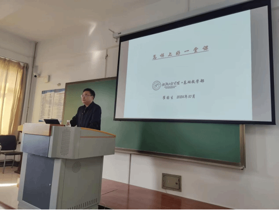 崔国生教授凭借自身多年积累的丰富教学经验与深入思考,对 “怎样上好一堂课” 这一关键主题进行了深刻剖析。他从一堂课与一门课的紧密关系入手,明确了评价课程的标准;详细阐述了备课的流程与内容,为教师们的教学准备工作给予了细致入微的指导;在因材施教、循序渐进、坚持课程标准、精准把握每次课的 “火候” 以及讲授重点难点的方法、板书设计等方面,为开展高质量教学过程提供了可借鉴、可复制的方式方法;还从评估专家听课关注的内容出发,使教师们能够更好地审视自身教学,持续提升教学水平。