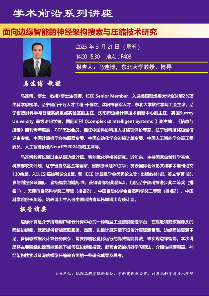 『学术讲座』面向边缘智能的神经架构搜索与压缩技术研究