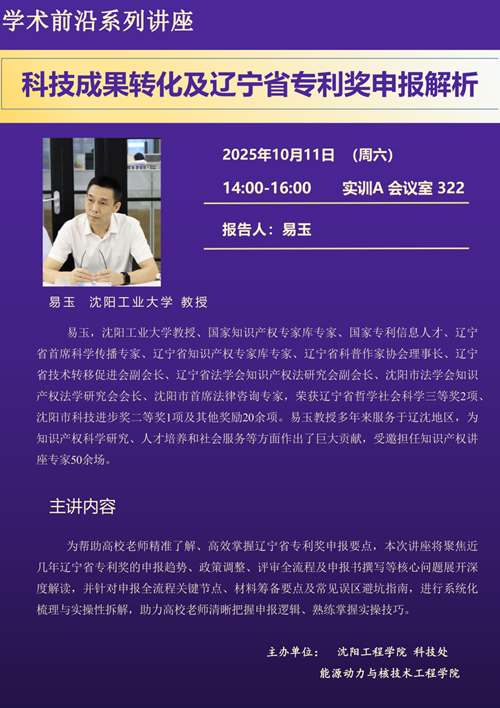 『学术讲座』科技成果转化及辽宁省专利奖申报解析