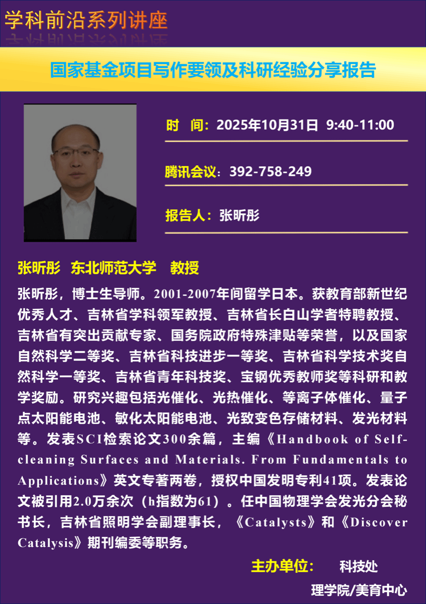 『学术讲座』国家基金项目写作要领及科研经验分享报告