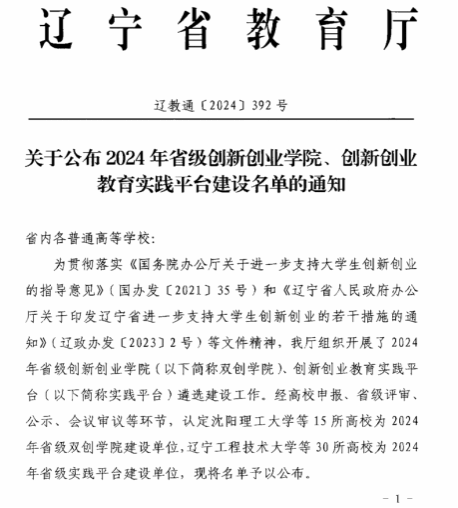 近日,辽宁省教育厅下发了《关于公布2024年省级创新创业学院、创新创业教育实践平台建设名单的通知》,公布了30所高校为省级创新创业教育实践平台,“bevictor伟德国际1946赛博创新创业教育实践平台”成功入选。